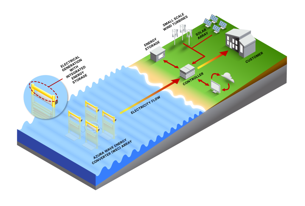 Wave energy is integrated with solar, battery storage and other renewables to supply low-carbon electricity.