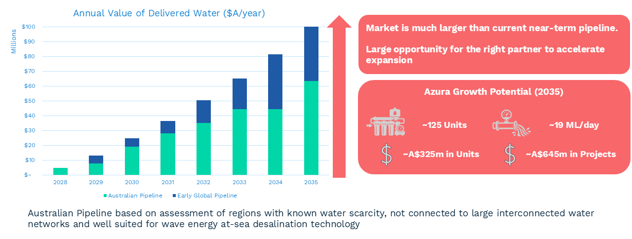 The A$30B small-scale desalination market segment present a significant opportunity for the right Azura partner to accelerate commercial growth.
