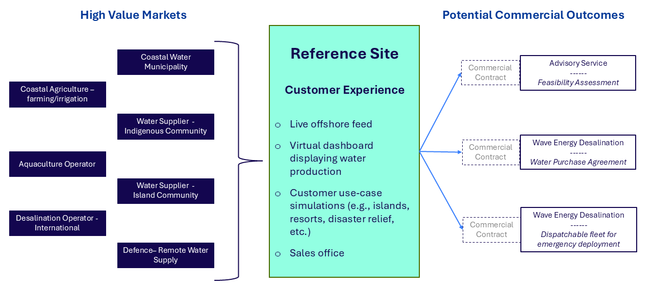 Azura’s Commercial Reference Site converts proven ocean energy technology into an at-sea desalination system, reducing first-of-a-kind risk and enhancing asset value.